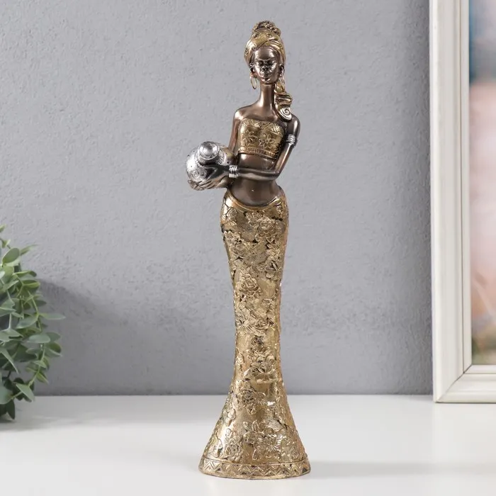 Фигурка полистоун «Африканка в золотом костюме с кувшином», 8.3×6×33 см
