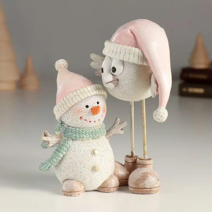 Фигурка полистоун «Снеговичок с птичкой на высоких ножках», 11×7.5×13 см