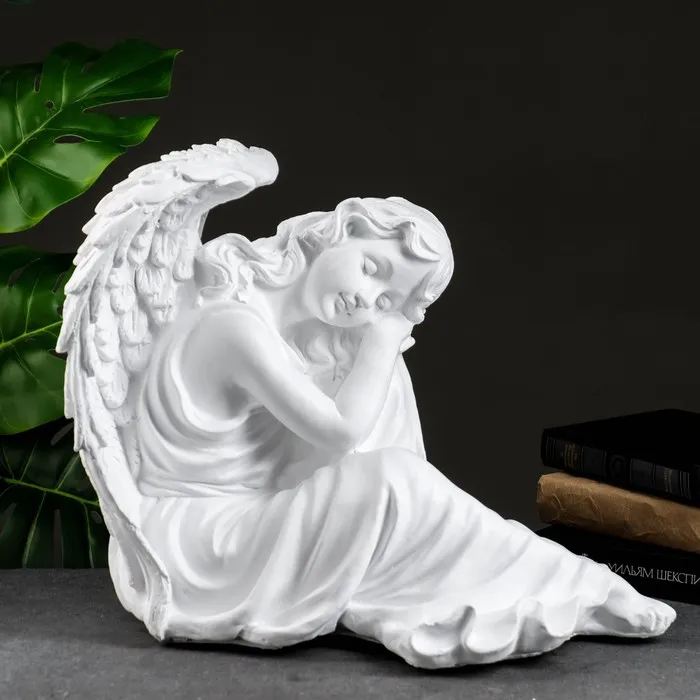 Фигура "Ангел девушка сидя" большая, белый 28х45х37см
