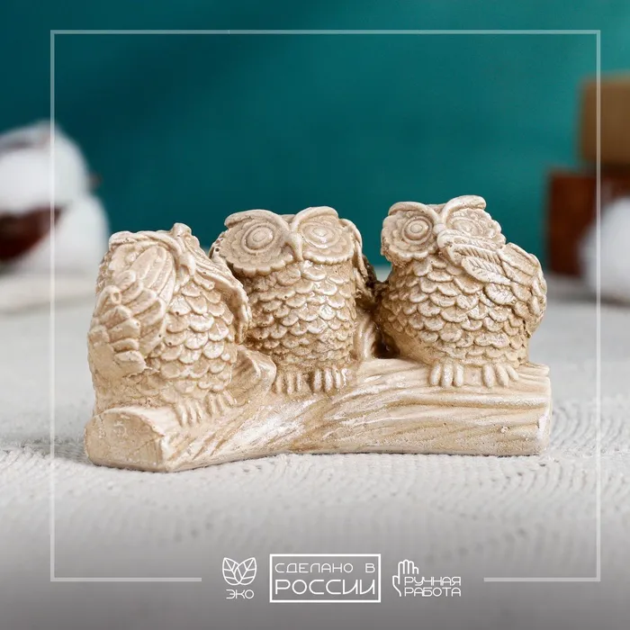 Фигурка гипс «Три совы на жердочке», коричневая, 10×6×5 см