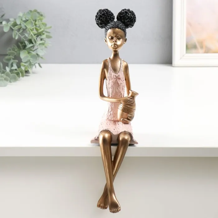 Сувенир полистоун "Девочка с кудрявыми хвостиками, с кувшином" бело-золотой 14,5х8,5х34,5 см 95719