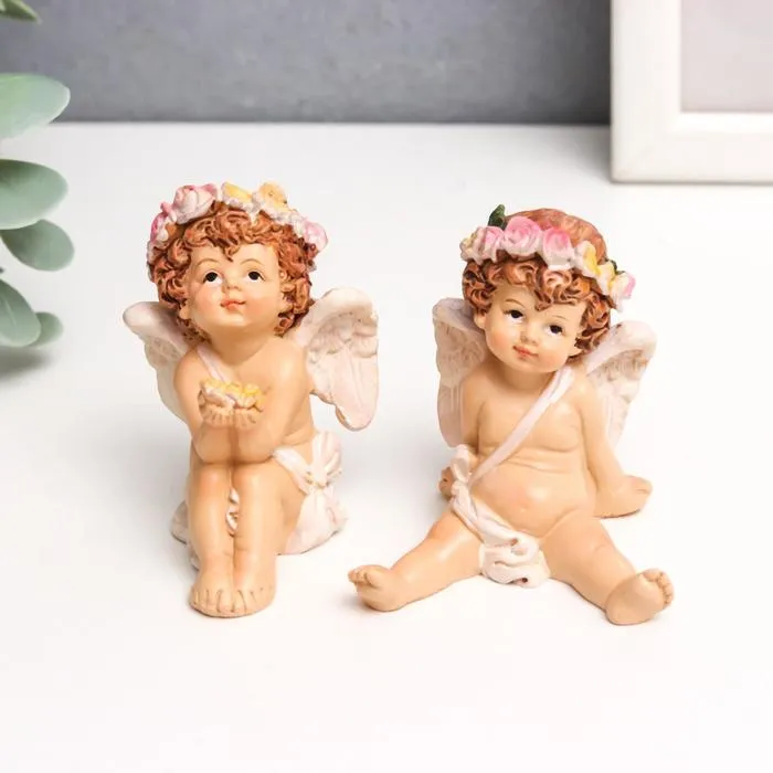 Сувенир полистоун "Ангел-карапуз цветочный венок" МИКС 6,5х4,5х4,7 см