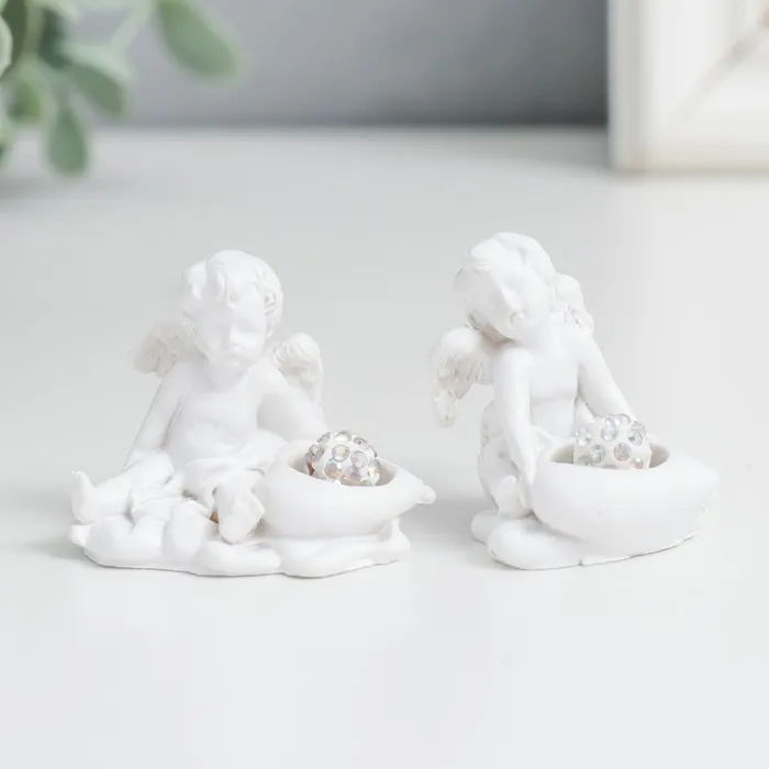 Фигурка полистоун «Белоснежный ангелочек с шариком из страз в сердце», 3.5×3×3.5 см, МИКС