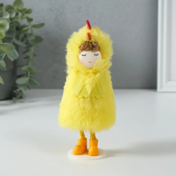 Интерьерная текстильная кукла «Девочка в костюме цыплёнка», 6×7×13.5 см