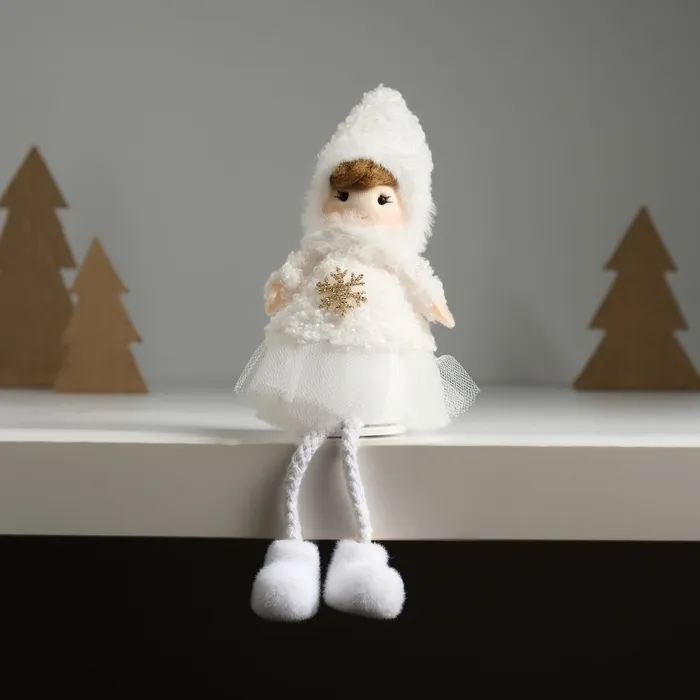 Интерьерная текстильная кукла «Девочка в белой шубке», 6×6×20 см