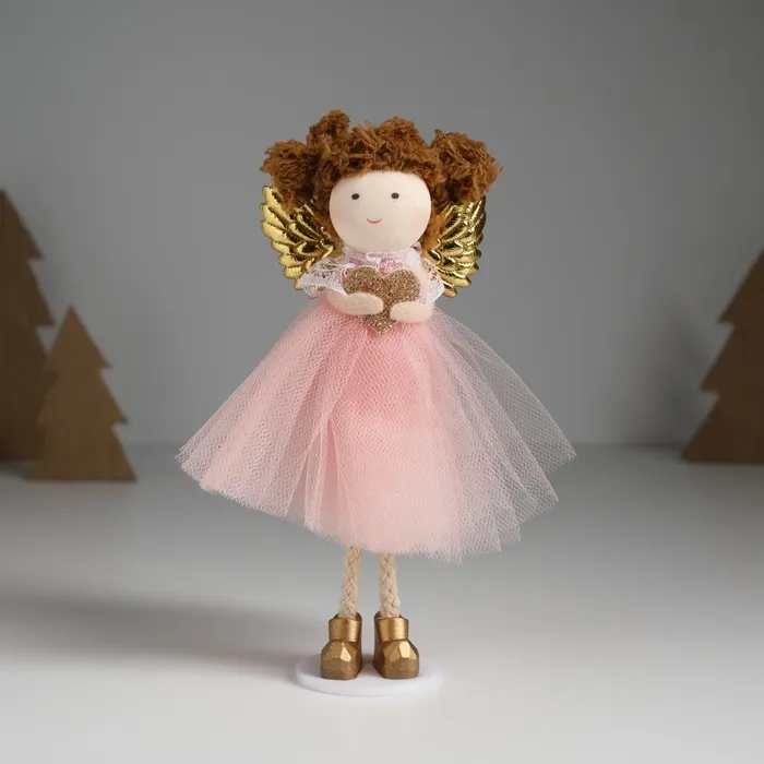 Интерьерная текстильная кукла «Ангелочек в розовом платье с крылышками и сердечком», 4×7×14 см