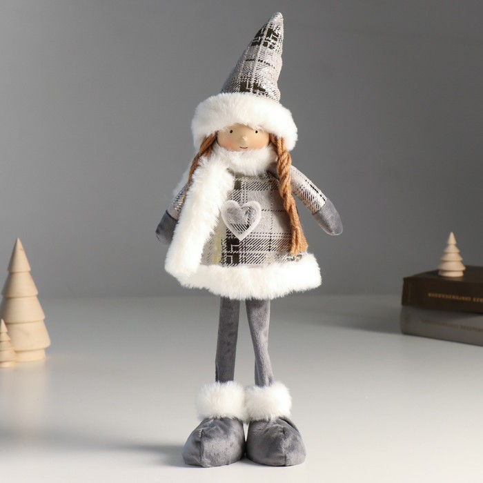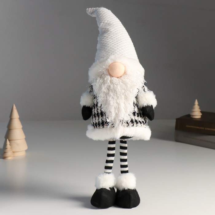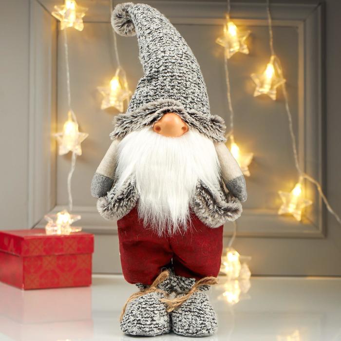 Кукла интерьерная текстильная «Дед Мороз в полосатых гетрах и сером колпаке», 48 см