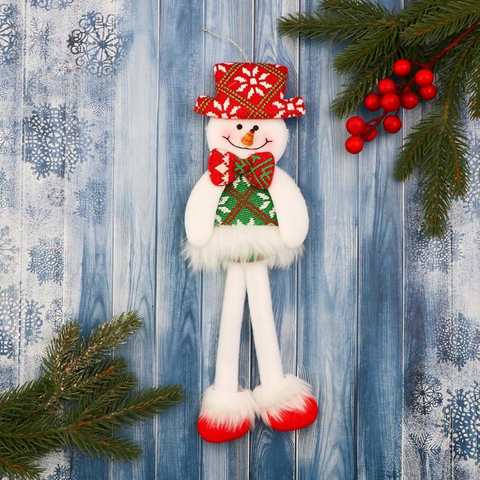 Игрушка мягкая «Снеговик в костюме с орнаментом, в шляпке» 9.5×30 см, красно-зелёный