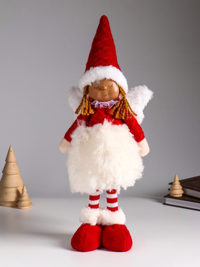 Интерьерная кукла текстильная «Ангелочек в меховой юбочке и красном колпаке», 15×9×45 см