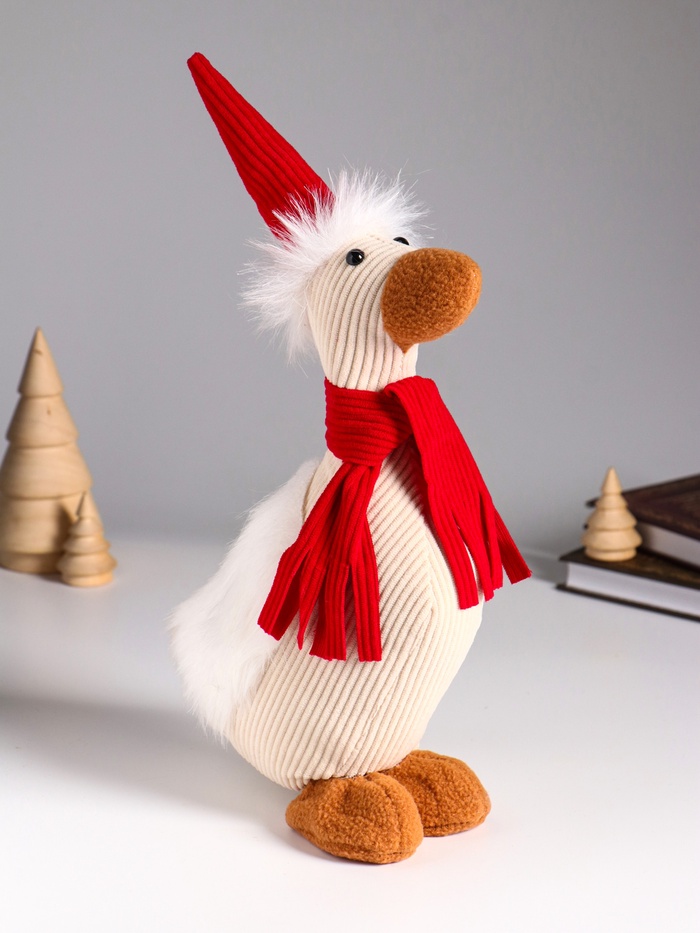 Интерьерная кукла текстильная «Гусь в красном колпаке и шарфе», 19×9.5×32 см