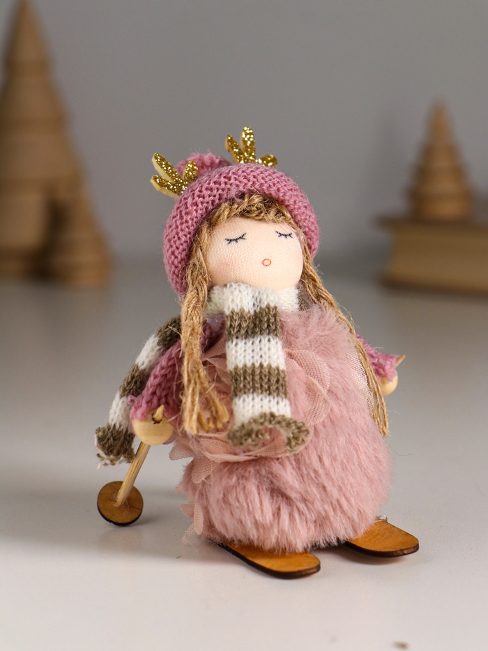 Интерьерная кукла текстильная «Малышка в платье зефирки, на лыжах», 5.7×4.2×10 см