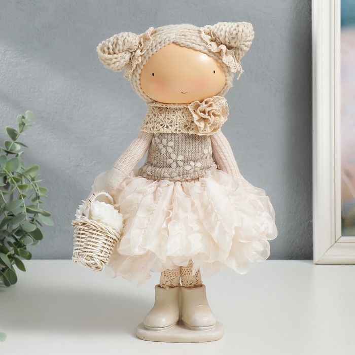 Интерьерная кукла текстильная «Малышка Зося в бежевом наряде, с корзиной цветов», 31×14×16 см
