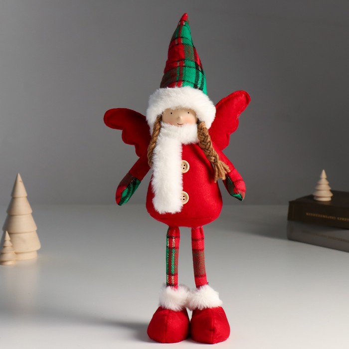 Интерьерная кукла текстильная «Ангелочек в красном наряде, клетчатый колпак», 16×7×40 см