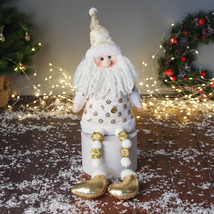 Интерьерная кукла текстильная «Дедушка Мороз в полосатых гетрах», 50×10×15 см