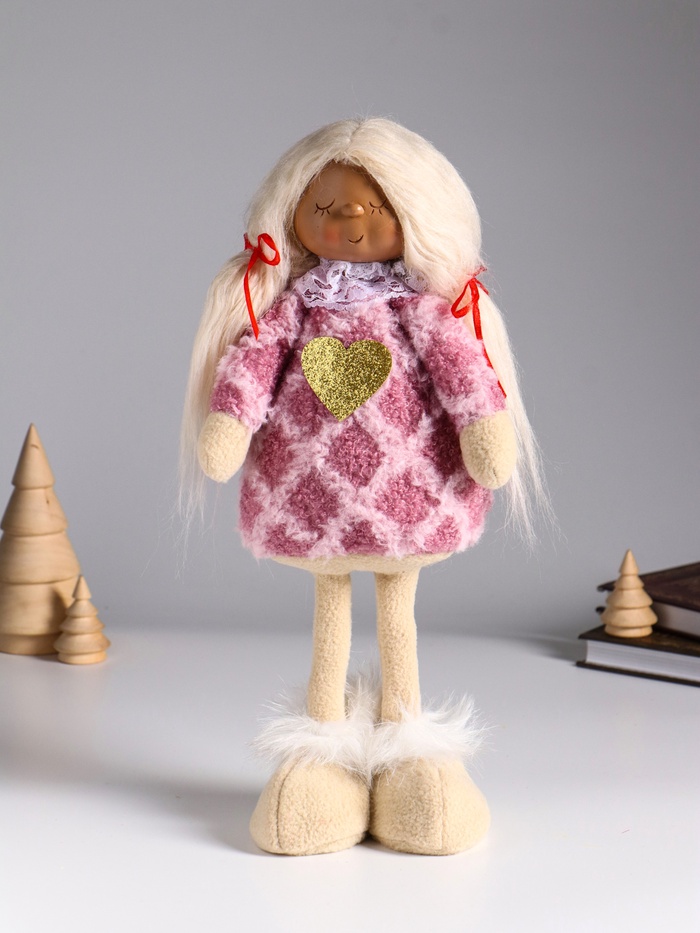 Интерьерная кукла текстильная «Малышка с хвостиками в розовом платье с сердцем», 14×8.5×32 см