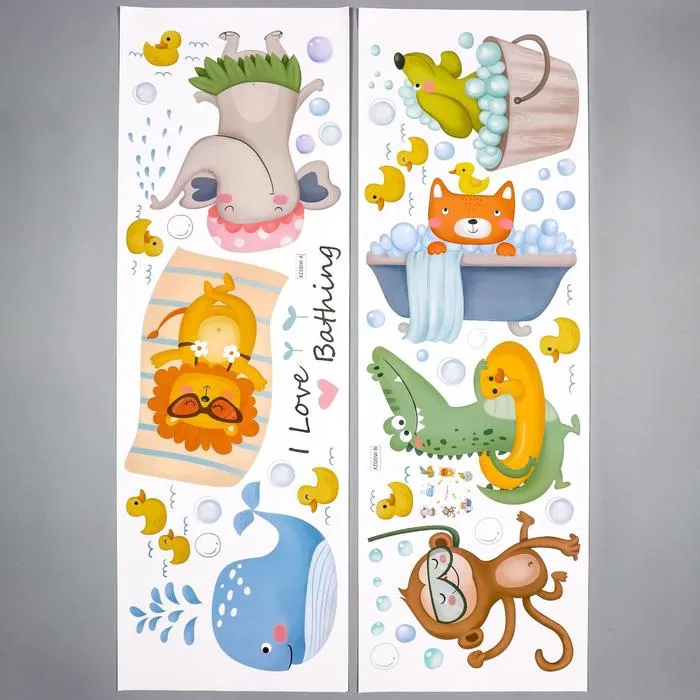Наклейка интерьерная цветная «Банные процедуры - зверята», 30×90 см, набор 2 листа