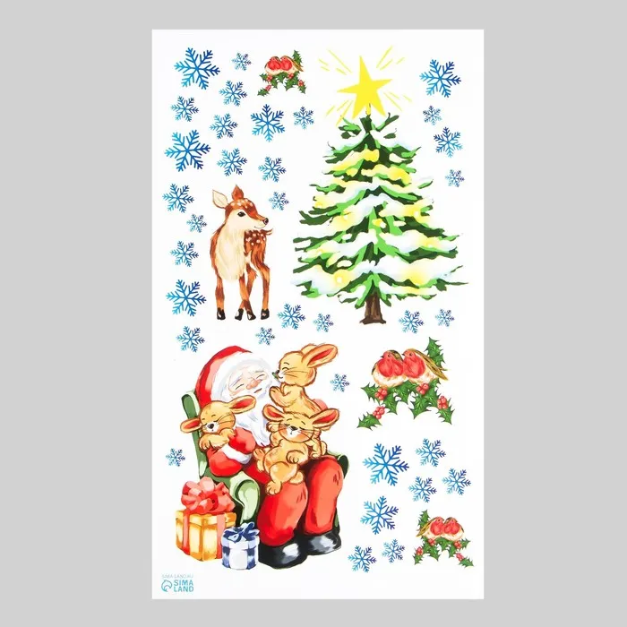 Наклейка интерьерная «Дедушка Мороз и зайки», 30×50 см