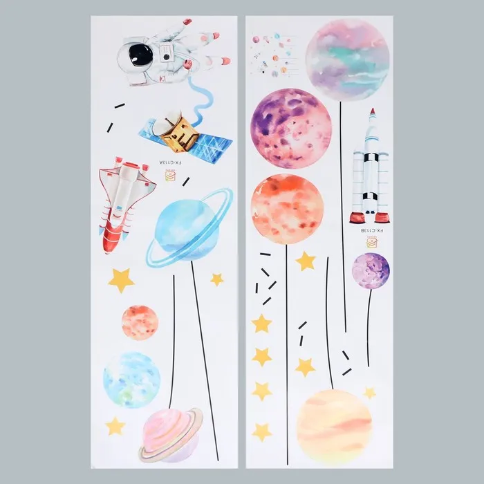 Наклейка пластик интерьерная цветная "Планеты на ниточках" набор 2 листа 30х90 см