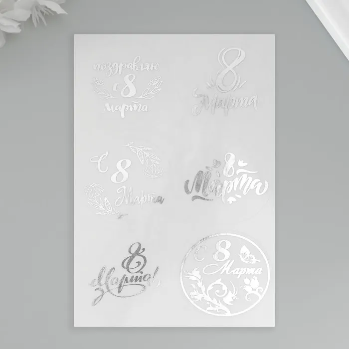 Наклейки (стикеры) "8 марта" 10х15 см, цвет серебро, 5-318