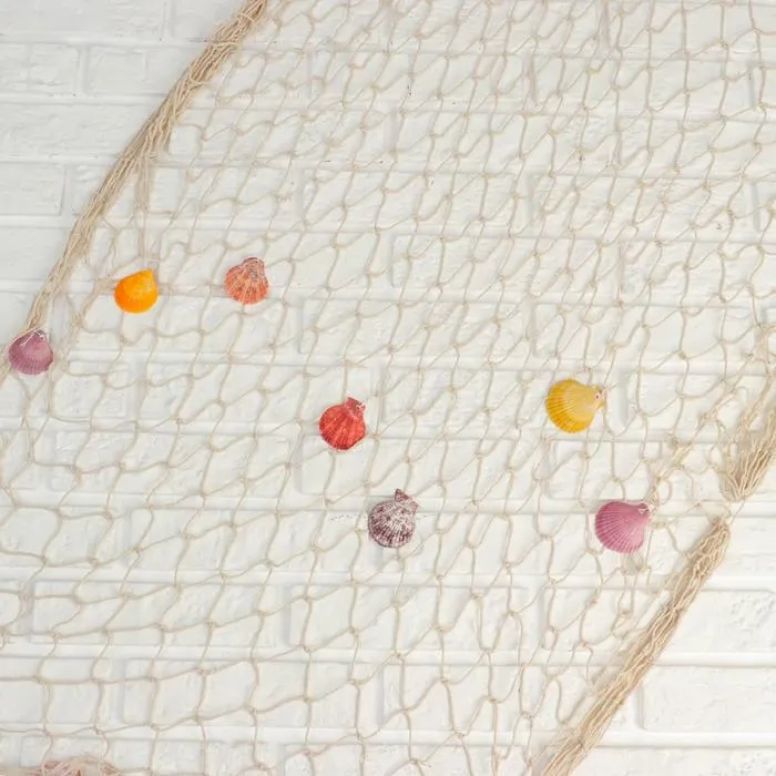 Декоративная сетка настенная «Белая с ракушками и буйками», 110×150 см