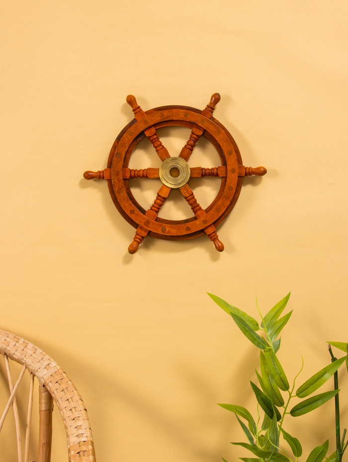 Штурвал декоративный, 32×32×3.5 см, дерево