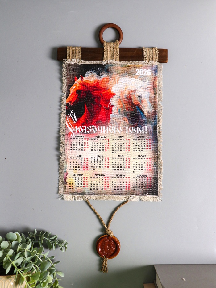 Декор настенный, панно «Календарь подвесной 2026. Сказочного года Лошади», 23.5×52 см