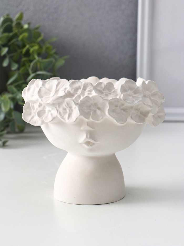 Подставка для мелочей «Девочка в венке», 12.5×11×10.5 см, натуральный, гипс