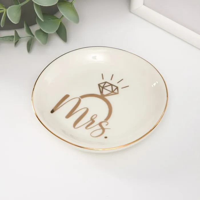 Сувенир керамика подставка под кольца "Кольцо с бриллиантом. Mrs" 10,5х10х1,6 см