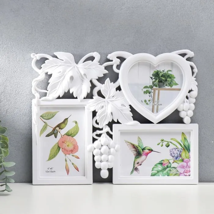 Фоторамка-коллаж на 3 фото 10×15, 13×13 см «Виноград», пластик, мультирамка, белый, 26×33 см