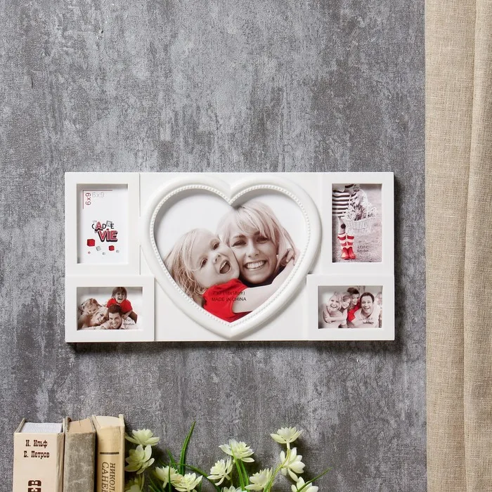 Фоторамка-коллаж на 5 фото 5×7, 6×9, 13×18 см «Большое сердце», пластик, мультирамка, белая, 18×35 см