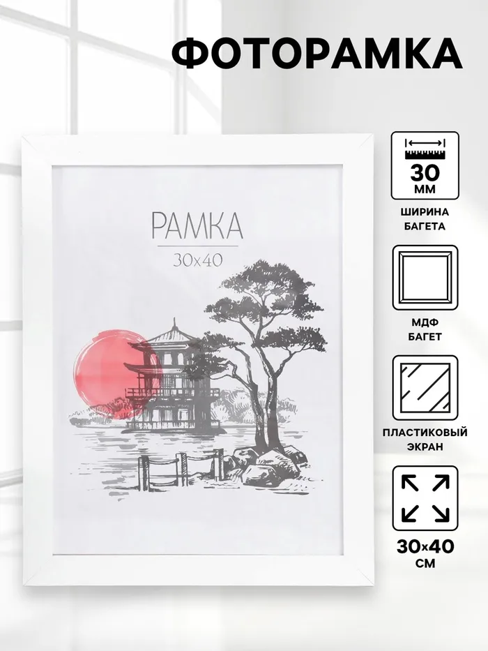 Рамка для фото МДФ 30х40см "Trend", белая (пластиковый экран)
