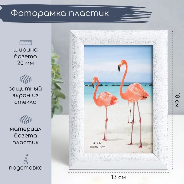 Фоторамка пластик 10х15 см "Серебряная патина на белом" 18х13 см