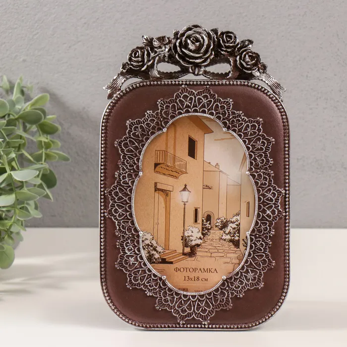 Фоторамка полистоун 10х15 см "Кружево и розы" серебро и шоколад 15х1,5х24 см