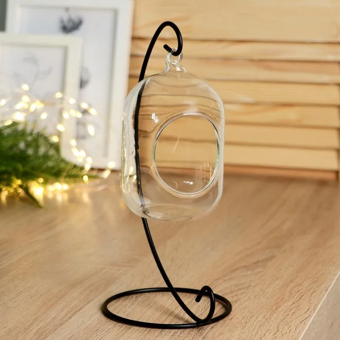 Флорариум «Цилиндр», на подвесе, 12×8 см, h=23 см, стекло, прозрачный, чёрный