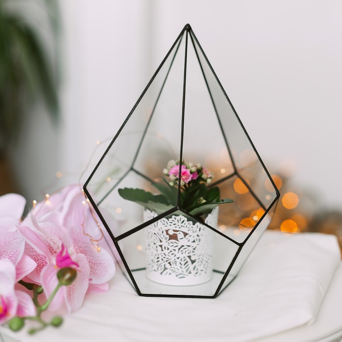 Флорариум «Агнес», каркас, 12×14 см, стекло, прозрачный, золотистый