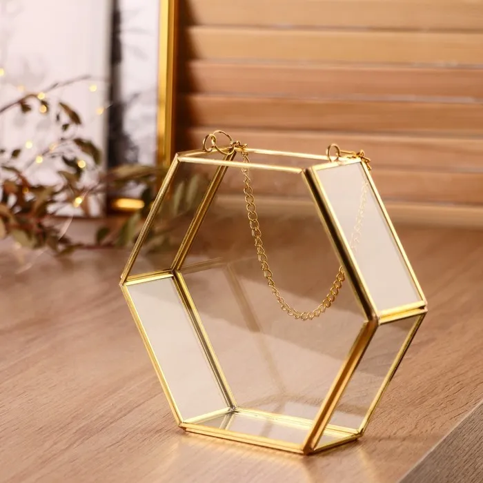 Флорариум «Каркас с цепочкой», 5×17×15 см, стекло, прозрачный, золотистый