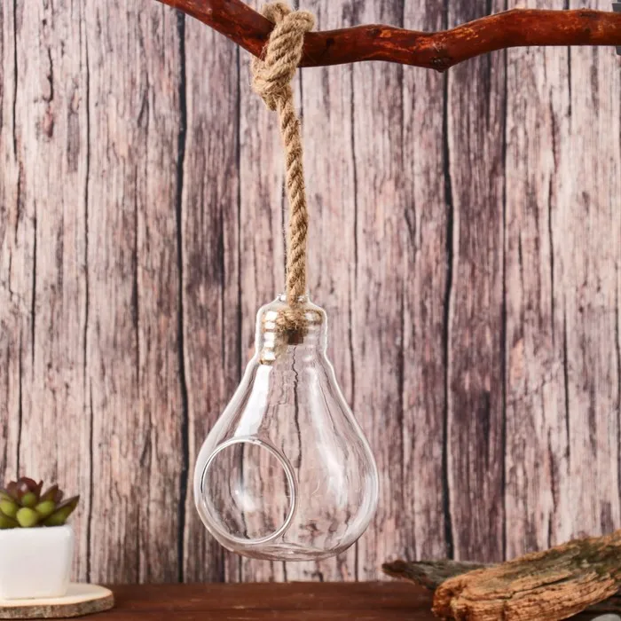 Флорариум «Лампа», с веревкой, d отверстия 5 см, 9×9×13 см, стекло, прозрачный