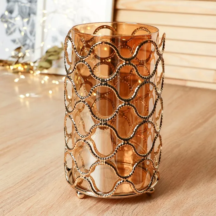 Ваза - флорариум «Ангстрем», колба в подставке, d=12 см, 16×20 см, стекло, прозрачная, колба золотистая