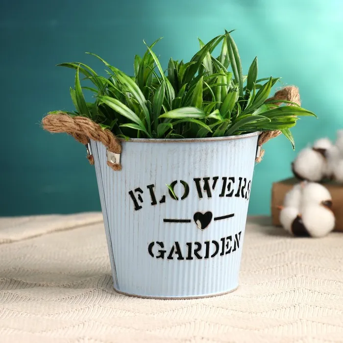 Кашпо «Ведёрко цветочный сад», 13×13×12 см, голубое