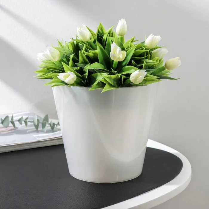 Кашпо для орхидей со вставкой, 1.6 л (1 л), d=16 см, h=14.5 см, белый перламутр