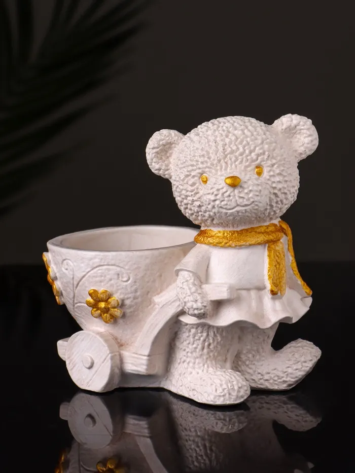 Кашпо гипс «Медведица с тележкой», 10×10×6 см, слоновая кость