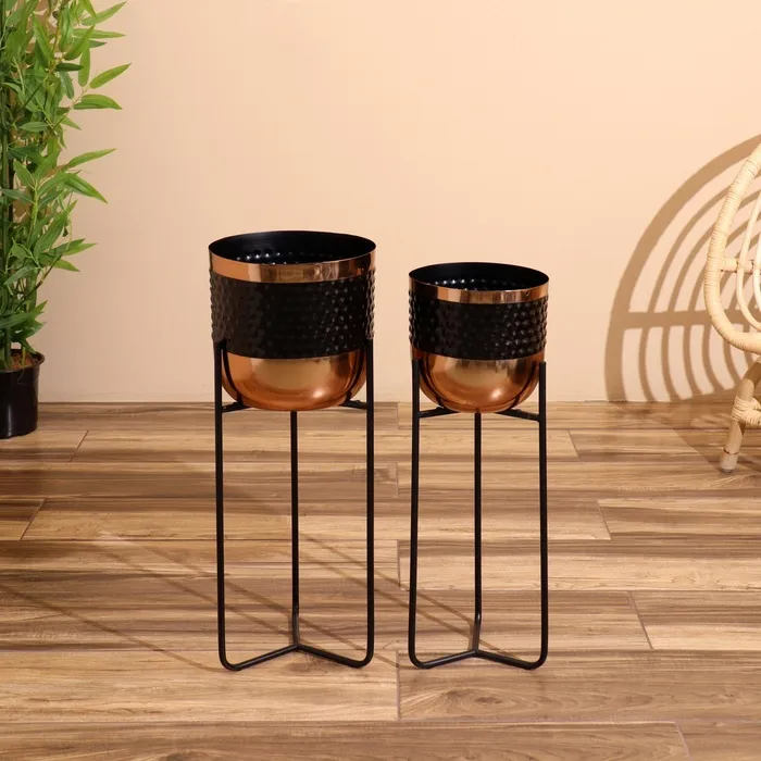 Кашпо на подставке "Слимо" металл (набор 2 шт), диаметр 24 и 19 см