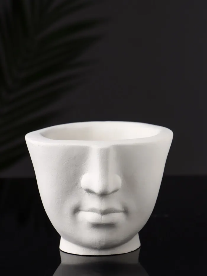 Фигурное кашпо для цветов «Лицо», гипс, 9×11 см