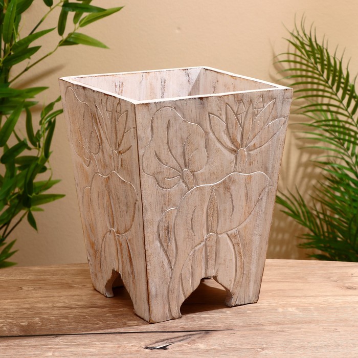 Кашпо "Цветы" 24х24х30 см, дерево албезия, светло-коричневый