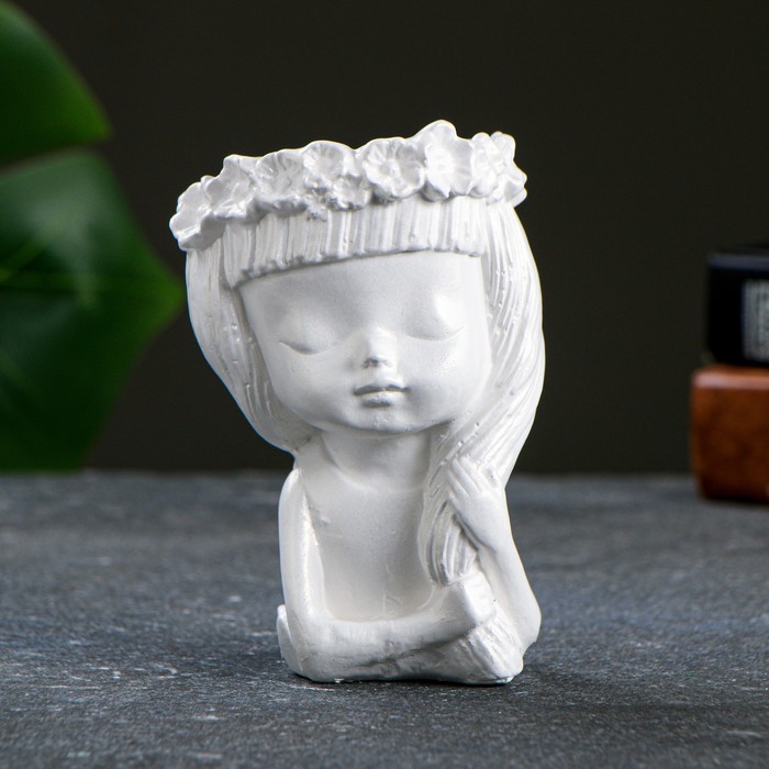 Декоративное кашпо для цветов «Девочка с веночком», 70 мл, h=11 см, гипс, белое