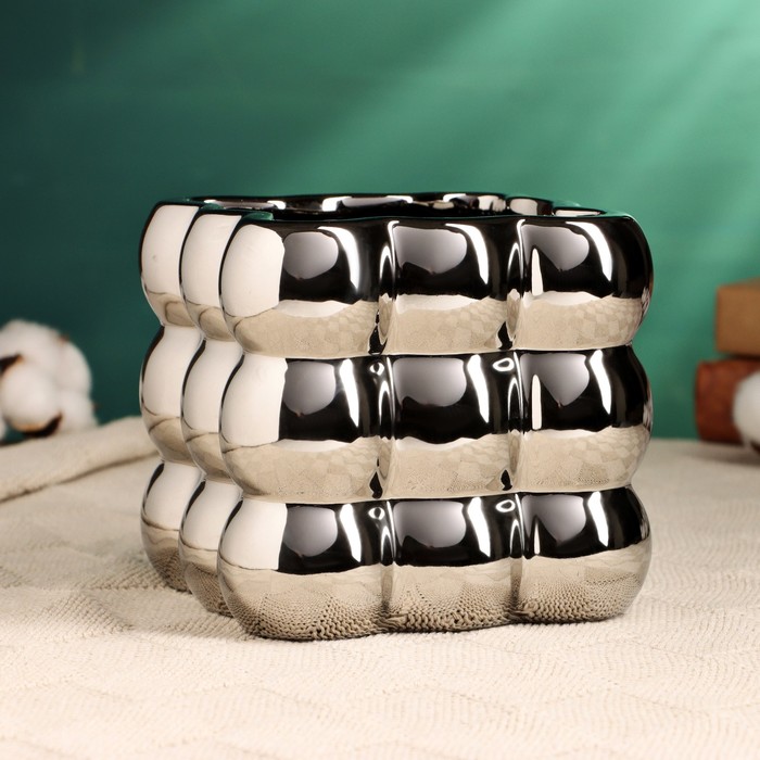 Декоративное кашпо для цветов «Люмьер», 13×13 см, керамическое, серебристое