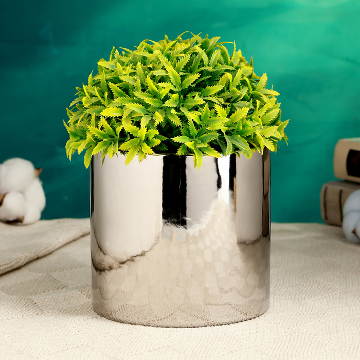 Декоративное кашпо для цветов «Люмьер», 10×10 см, керамическое, серебристое