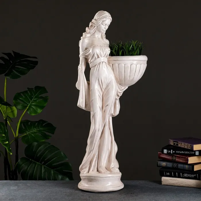Фигура с кашпо "Девушка в платье" состаренный, 1,2 л / 23х84х35см