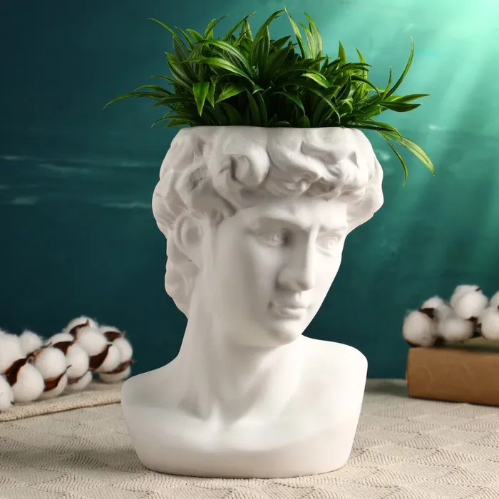 Кашпо - ваза "Голова Давида" белое, 22*16*14 см