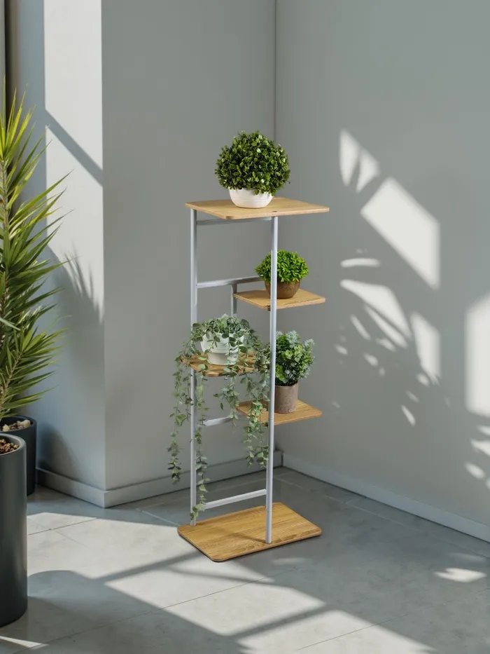 Подставка для цветов Greengo, 4 полки, 36×23×74 см, напольная, каркас металл, полки МДФ, белая
